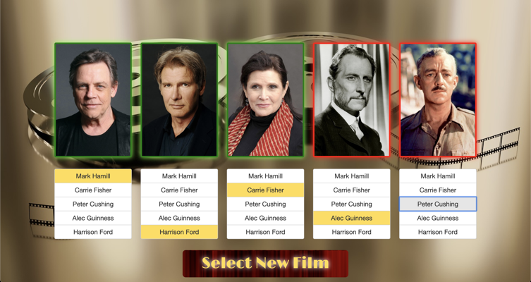 "Who's In It?"" is a movie cast matching game I built while teaching myself React.js in 2017. Players search for a movie by title, select from the search results, and are presented with five cast member headshots. They must match each image to a scrambled list of names to win the game. Movie data is retrieved from The Movie Database API.